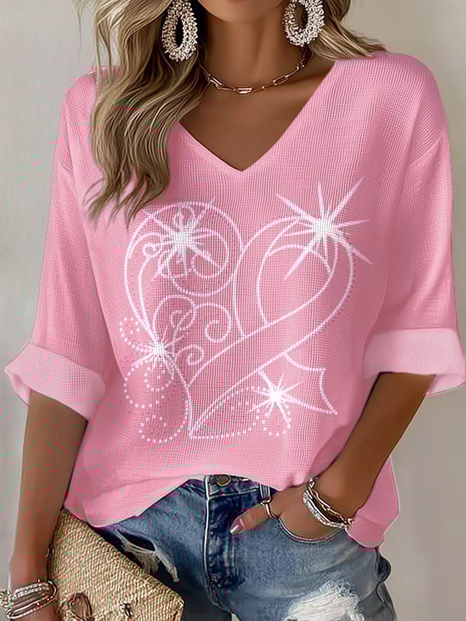 Women's Casual Breast Cancer Awareness Waffle Long Sleeve T-Shirt