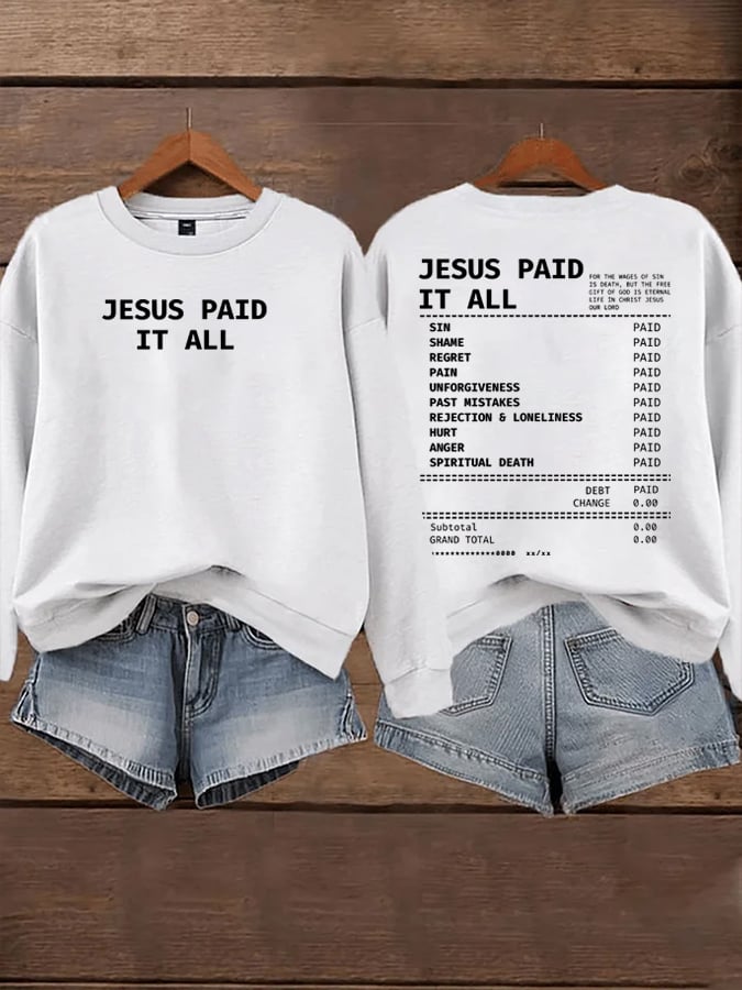 Women's Jesus Paid It All Faith Print Sweatshirt